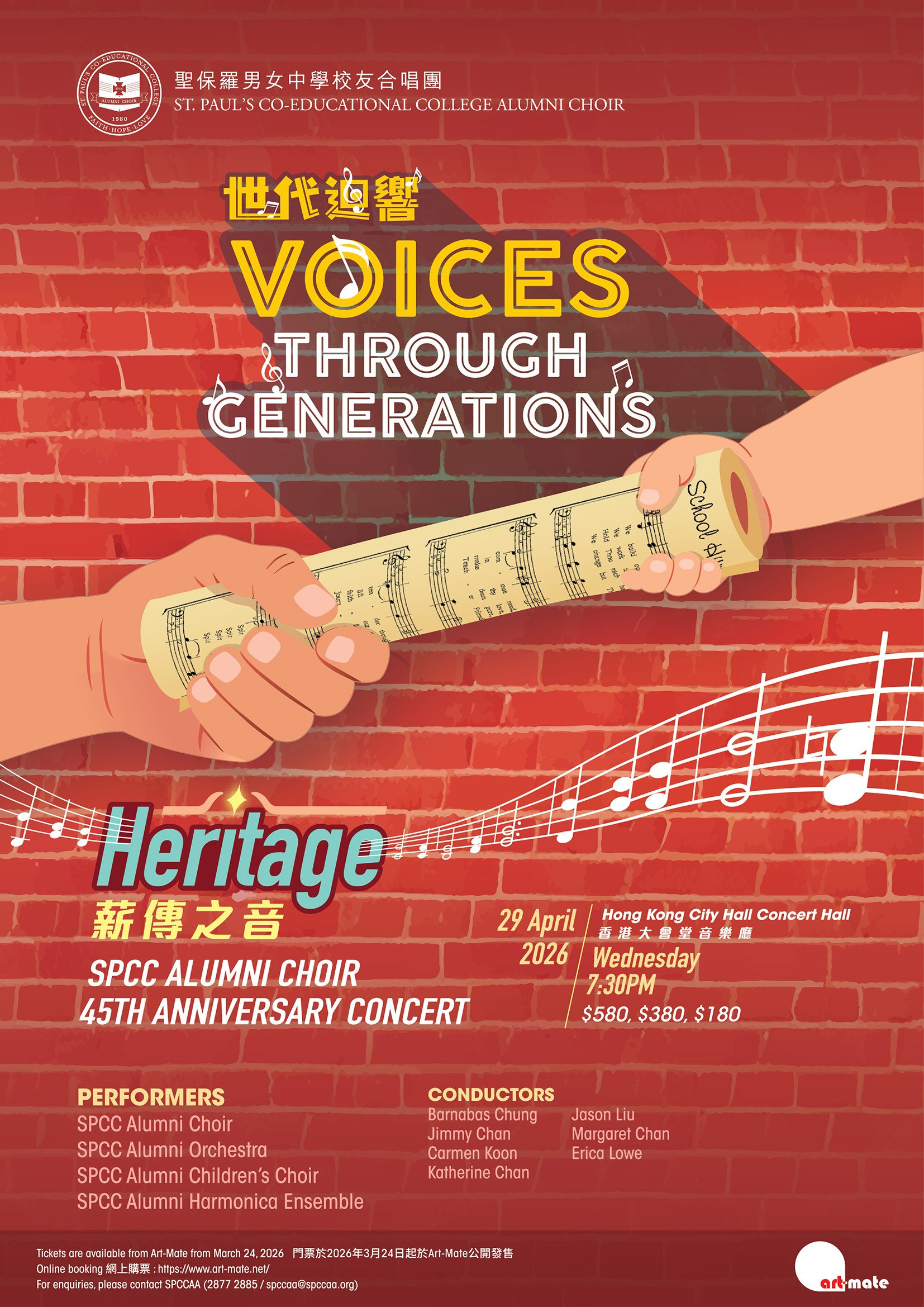 To make this milestone as impactful as possible, we are reaching out for your support, which will directly help stage this elaborate production and sustain our music mission. Similar to previous years, we would be grateful for your contribution through sponsorship, or advertisements / compliment notes in the concert programme book. Please refer to the attached leaflet, or contact Carroll Yeung at SPCCAA (spccaa@spccaa.org, 2877 2885) for details. We would greatly appreciate your contribution by March 20, 2026 (Fri). Thank you very much in advance for your support!